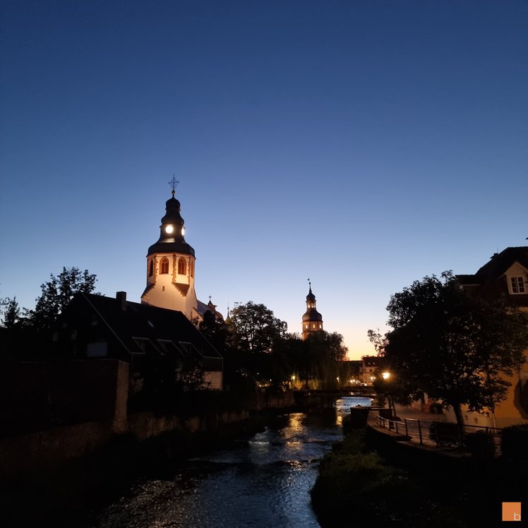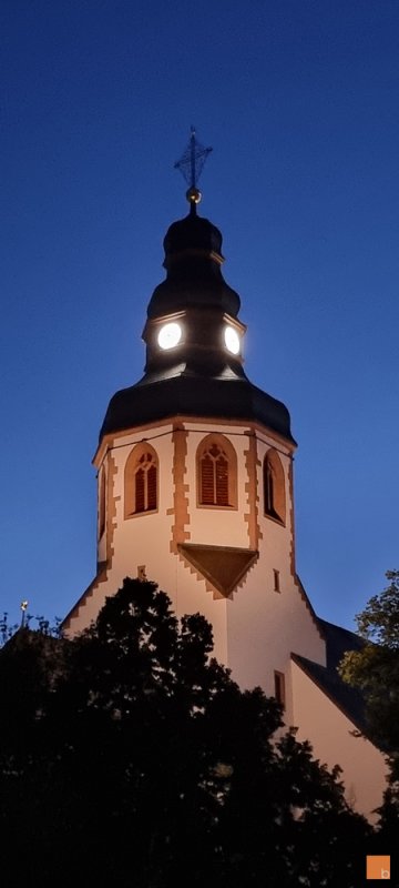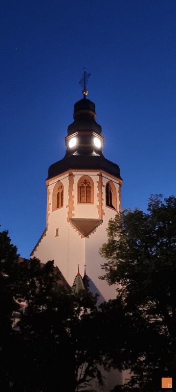 Seit heute wird die Kirche wieder vollständig angestrahlt und vervollständigt die abendliche Silouette der Stadt Ettlingen.