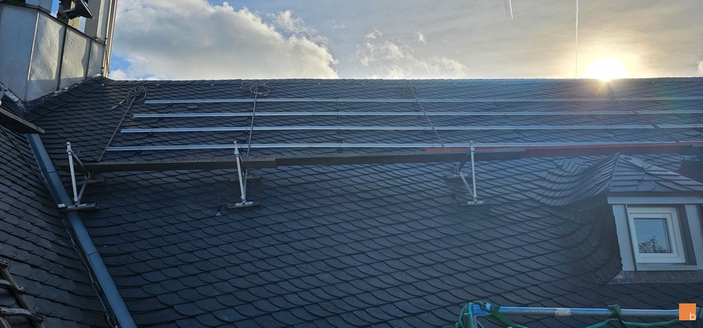 Die Unterkonstruktion für die Photovoltaikmodule ist ebenfalls bereits montiert. In den kommenden Tagen sollen dann die ersten Module montiert und somit die Arbeiten auf diesen Dachflächen abgeschlossen werden.