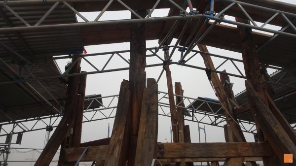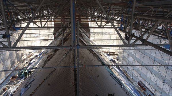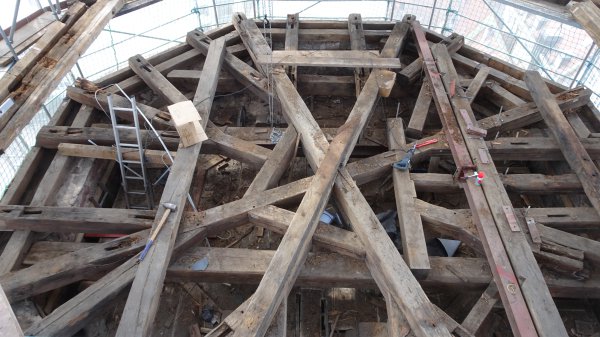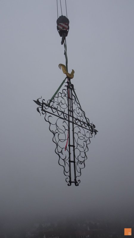Demontage Holzkonstruktion Turm der Kirche St. Martin