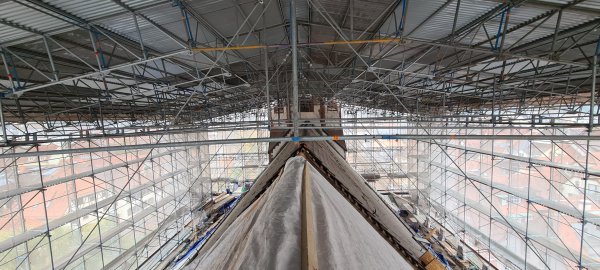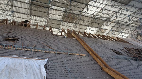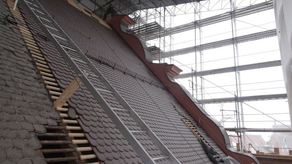 neue Schalung auf dem Dach der Kirche Herz Jesu