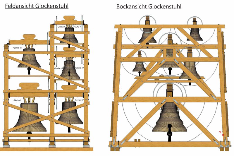 Die Fa. Glockengießerei Bachert, Neunkirchen zeichnete sich für die Planung des Glockenstuhls verantwortlich.